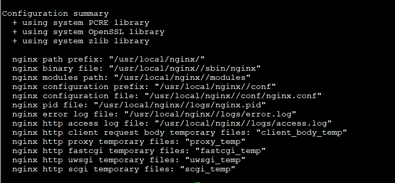 3.解压后,cd到nginx目录:cd /usr/local/nginx/ (修改nginx文件夹名,可改可不改),然后进行配置:./configure ,最后执行安装:make && make install