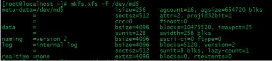 [root@localhost ~]# mkfs.xfs -f /dev/md5 //-f表示强制覆盖