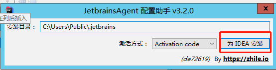 5.选择激活方式为Activation code,并点击为IDEA安装按钮。