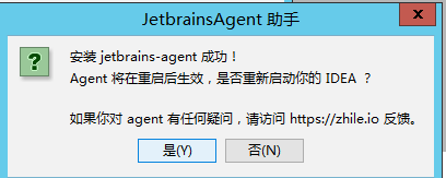 4.这时,idea会将jar当作是一个插件,进行安装并重启,会给出如下图示,我们点击restart,并等待idea重启: