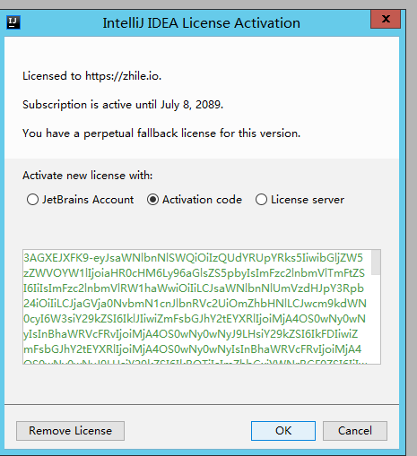 可以看到激活码已经生效,并且有效期一直到2089年。