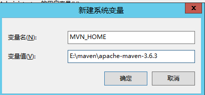 系统变量中,增加maven配置,新建系统变量后,输入变量名和变量值,如下图,点击确定