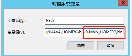 在”path“变量中,增加关于maven的配置,如下图,点击确定。一路确定,直至高级系统设置页面消失。