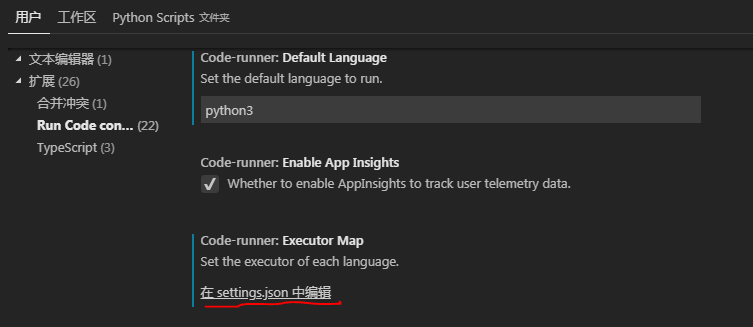 按照网路上大牛们的解决方法——存在乱码必然是编码不正确,即在扩展的settings.json中加入"python": "set PYTHONIOENCODING=utf8 && python"