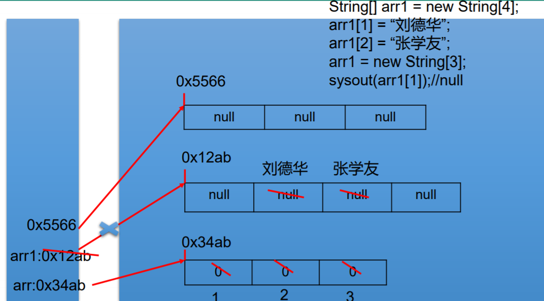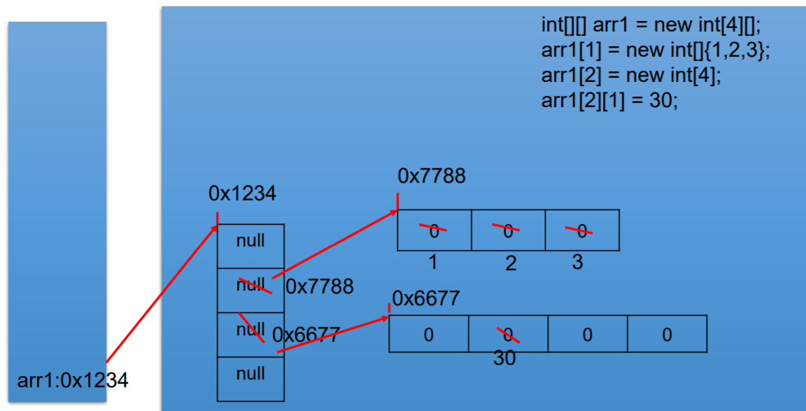 动态 二维数组2: String[][] arr5 = new String[4][3]; -