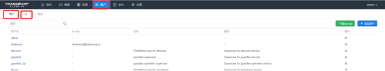 ⑤ 在顶部菜单栏,单击租户(注意:您可以根据您的业务需求选择创建用户组,也可以选择直接创建租户,此处为了便于演示,仅演示如何创建租户,更多用户组的介绍及其他内容请查看开发者指南资源与管理权限章节;