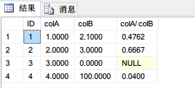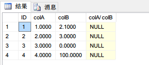 VALUES(1.0,2.1),(2.0,3.0),(3.0,0),(4.0,100.0);