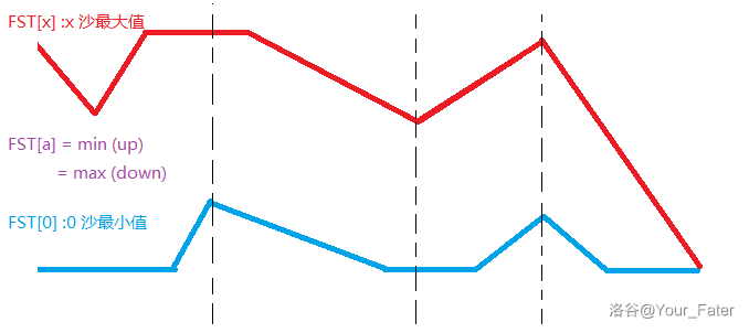 因为如果你用 $s u m$ 算出来的折线某一时刻超过了 $y=0$ 或 $y=X$ ,那么它永远不可能回到区间 $[$ down,$u p]$, 除非此时 down $=u p_{\circ}$