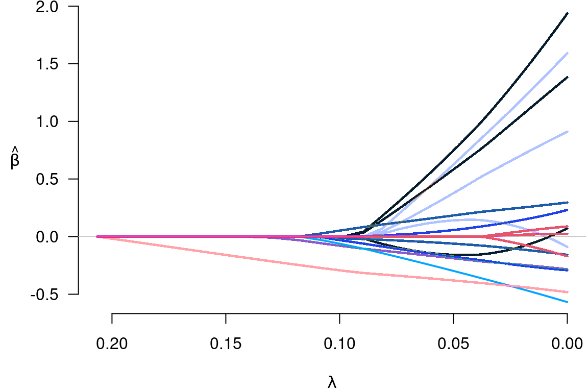 原始拟合(对完整数据集)返回为fit; 其他几种惩罚是可用的,逻辑回归和 Cox 比例风险回归的方法也是如此。