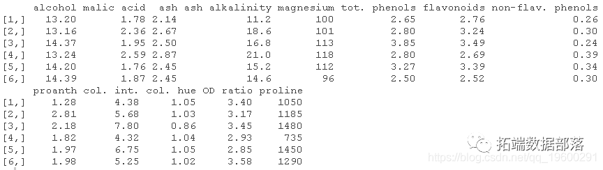 数据包含177个样本和13个变量的数据框;vintages包含类标签。这些数据是对生长在意大利同一地区但来自三个不同栽培品种的葡萄酒进行化学分析的结果:内比奥罗、巴贝拉和格里格诺葡萄。来自内比奥罗葡萄的葡萄酒被称为巴罗洛。