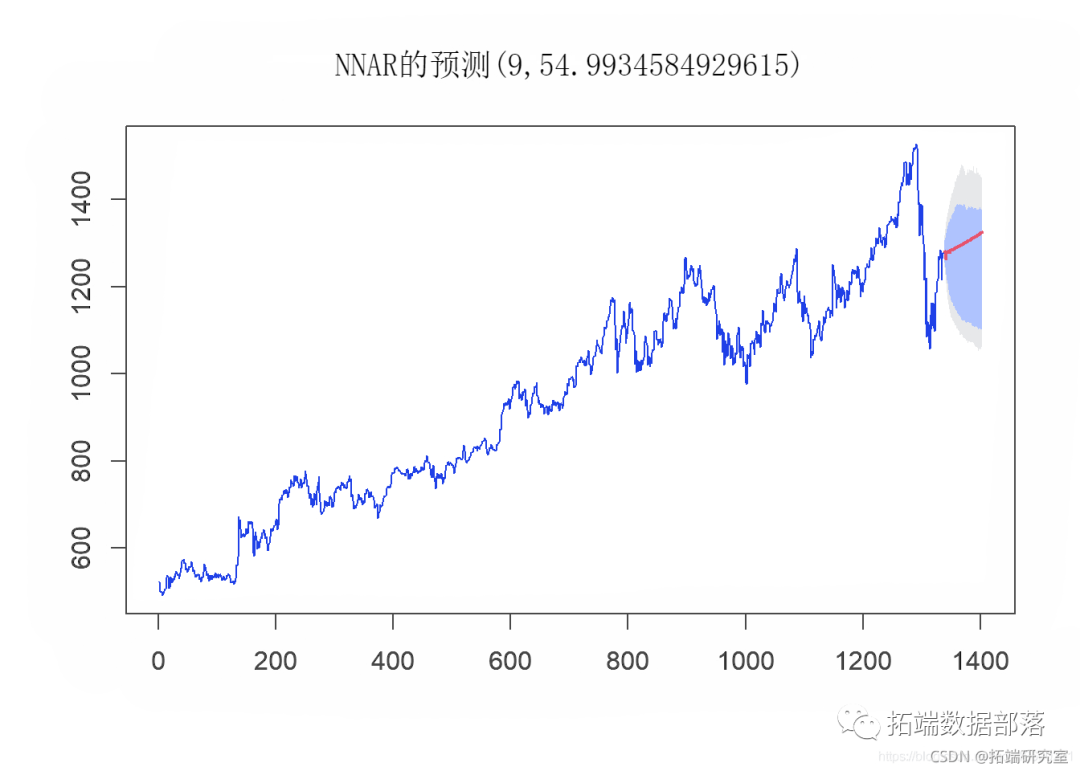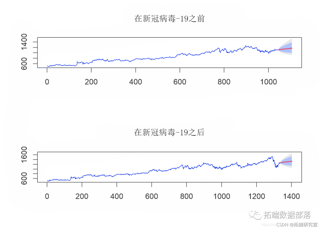 #隐藏层的创建 hn\_before\_covid <- length(before.Close)/(alpha*(lengthGOOG.Close + 61) hn\_after\_covid <- length(after\_covidClose)/(alpha*(lengthafter\_ovdClose+65)) #拟合nn nn(before\_covid$GOOG.Close, size = hn\_beoe_cid, # 使用nnetar进行预测。 forecast(befe_cvid, h 61, I =UE) forecast(aftr_coid, h = 5, I = RE)