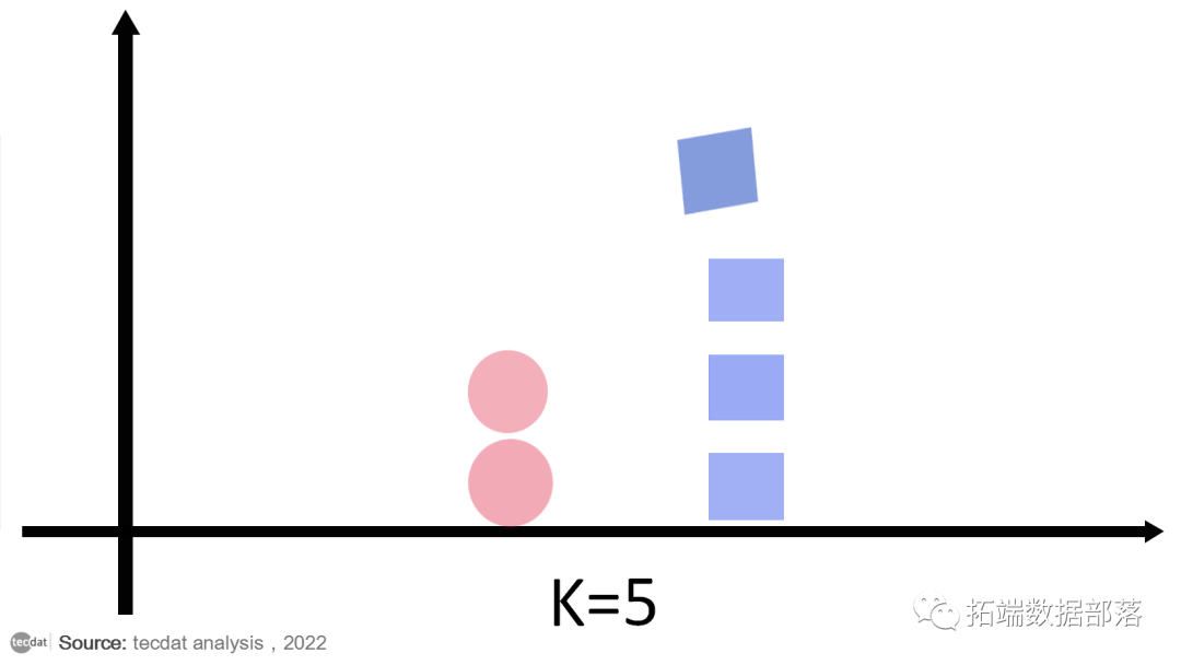 步骤4:在这k个邻居中,统计每个类别的数据点个数。