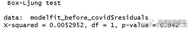 在此,两个模型的p值均大于0.05。因此,在显着性水平为0.05的情况下,我们无法拒绝原假设,而得出的结论是残差遵循白噪声。这意味着该模型很好地拟合了数据。