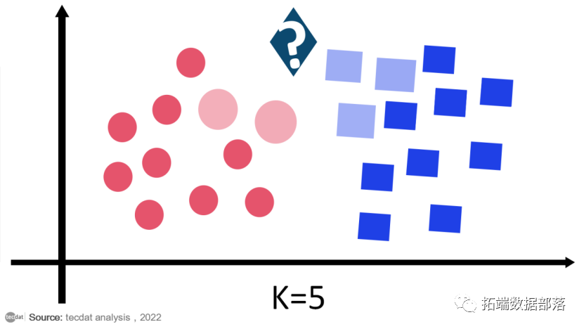 步骤 5:将新数据点分配给邻居数量最大的类别。