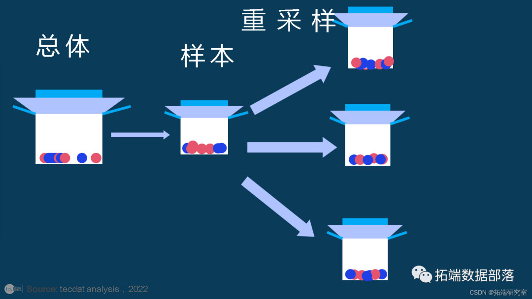 另一方面,自抽样方法获取原始样本数据,然后对其重新采样以创建许多 [模拟] 样本。这种方法不依赖于理论,因为可以简单地观察采样分布,并且不必担心任何假设。这种技术可以准确估计统计数据,这在使用数据做出决策时至关重要。