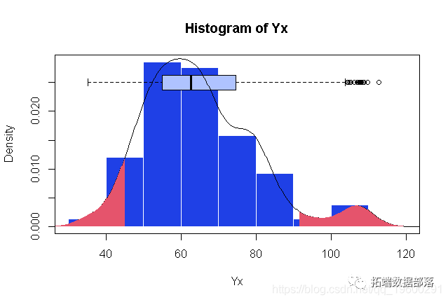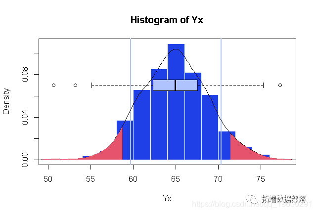 在这里,我们可以(首先以图形方式)比较通过重新取样获得的值和在正态假设下获得的值,