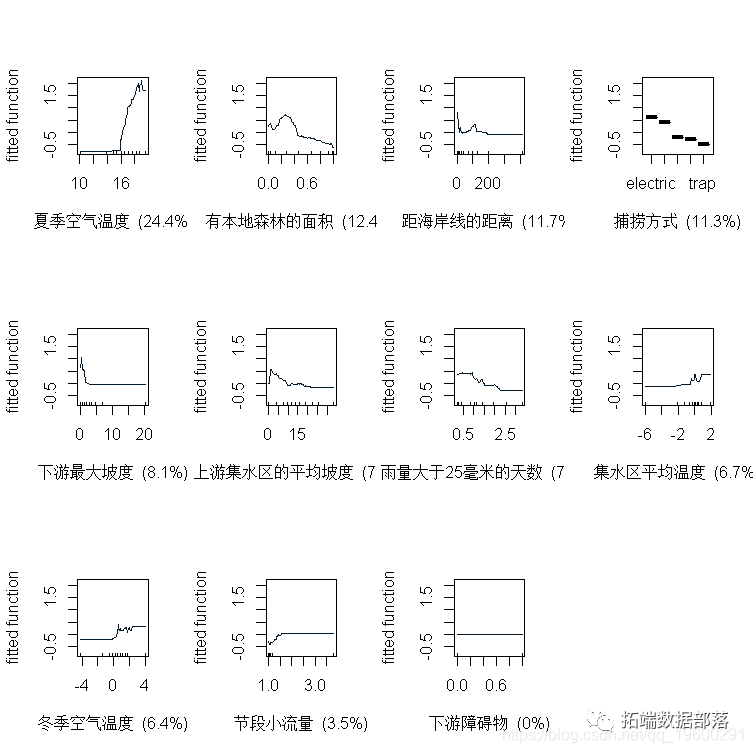 由我们的函数创建的BRT模型的拟合函数可以用plot来绘制。