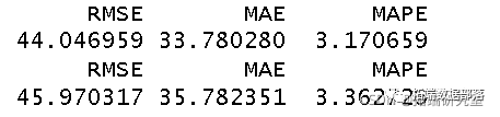现在,我们使用参数诸如RMSE(均方根误差),MAE(均值绝对误差)和MAPE(均值绝对百分比误差)对所有三个模型进行分析 。