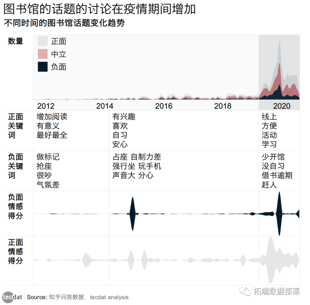 新型冠状病毒导致的肺炎疫情给大学图书馆信息资源建设工作带来了极大影响和冲击,通过时间线的对比,我们发现疫情前后的图书馆话题数量和情感表现发生明显变化。
