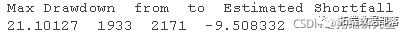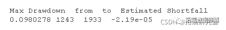 # 最差的0.95%最大回撤的平均值 mdM <- maxdadw(mlvs\[,2\]) CvaR(ldaa), p=0.95, meto="mdii", pimeod = "comnen", weghts)