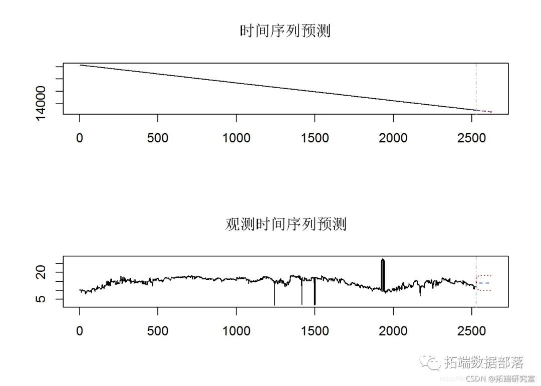 VAR(merts, p = 2, tp = "cost") # 预测未来125天、250天和500天 mle_r.pd <- prect(e.ar, n.ahad = 100, ci = 0.9) plot(mea.prd)