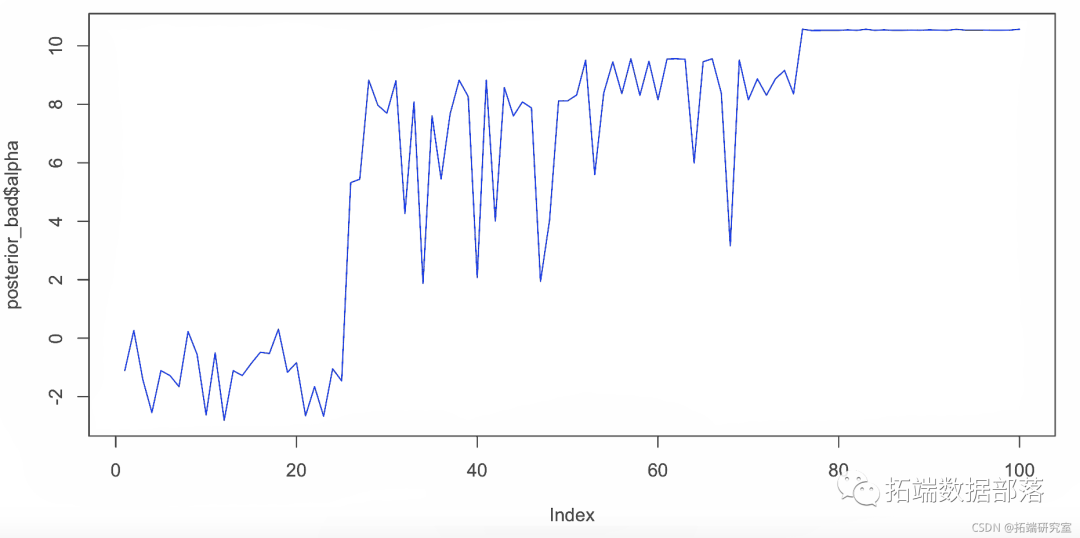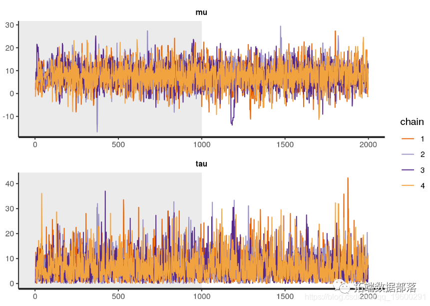 Stan 如果warmup = 未指定参数,则自动使用一半的迭代作为预热 。