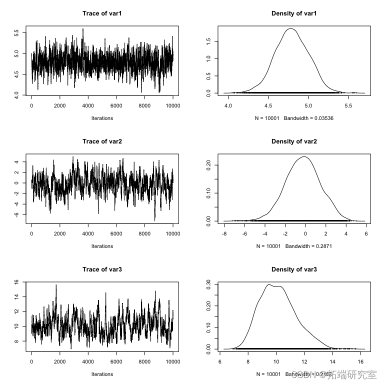 R语言coda贝叶斯MCMC Metropolis-Hastings采样链分析和收敛诊断可视化|附代码数据