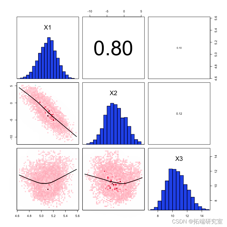 在我们的例子中,应该没有大的相关性,因为我以这种方式设置了示例