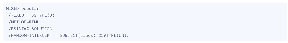 这告诉我们,“流行”课程总变化的大约三分之一可以由每个学生所在的班级解释。