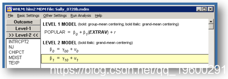 HLM报告方差组件的标准偏差,而不是标准误差。同样,对于随机效应,他 仅报告截距的卡方统计量和p值。这些结果与其他程序的结果相同。