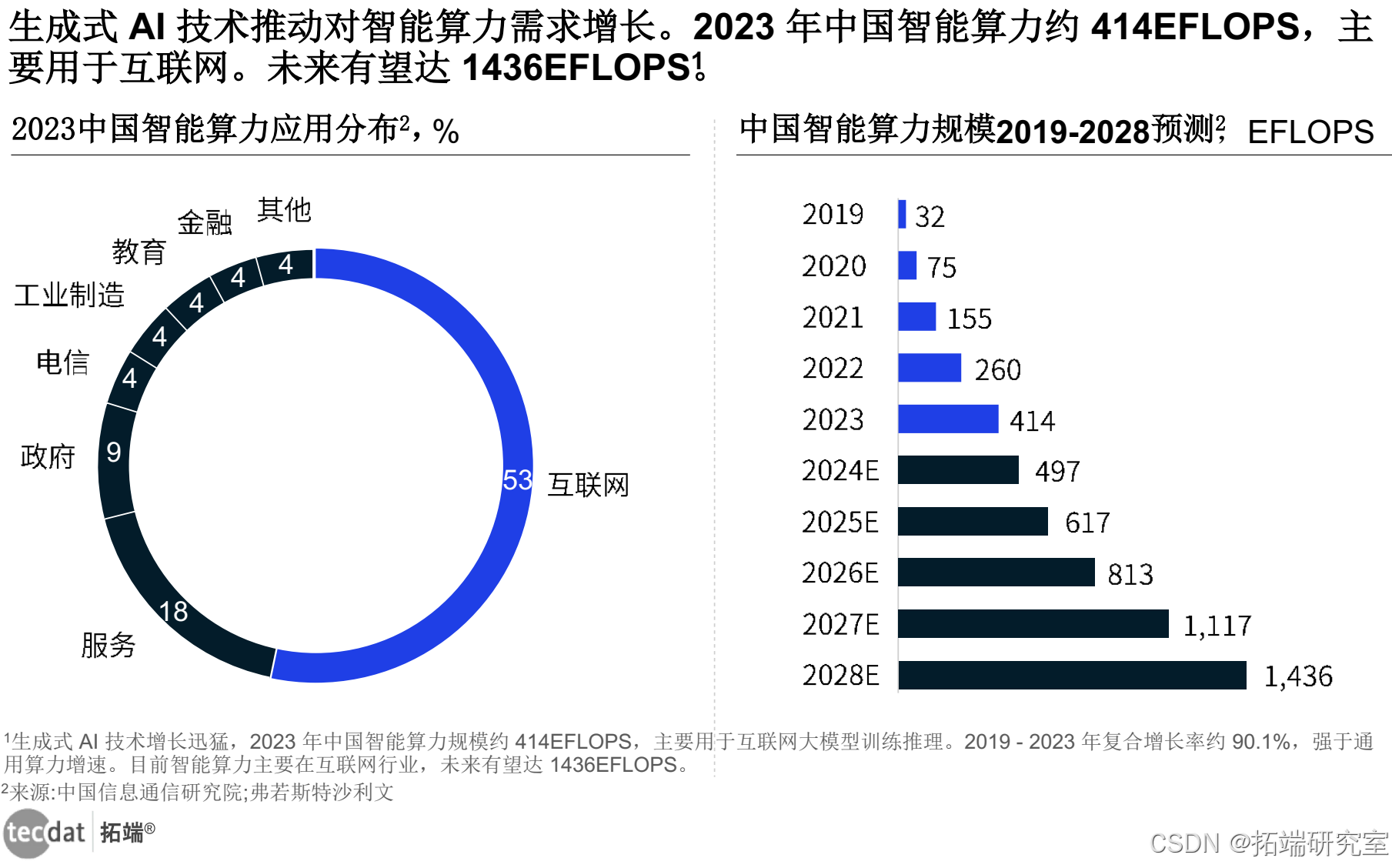 算法是基于数据分析构建的基础规律并进行预测。展望未来,预计到 2028 年,中国智能算力规模将达 1436EFLOPS。