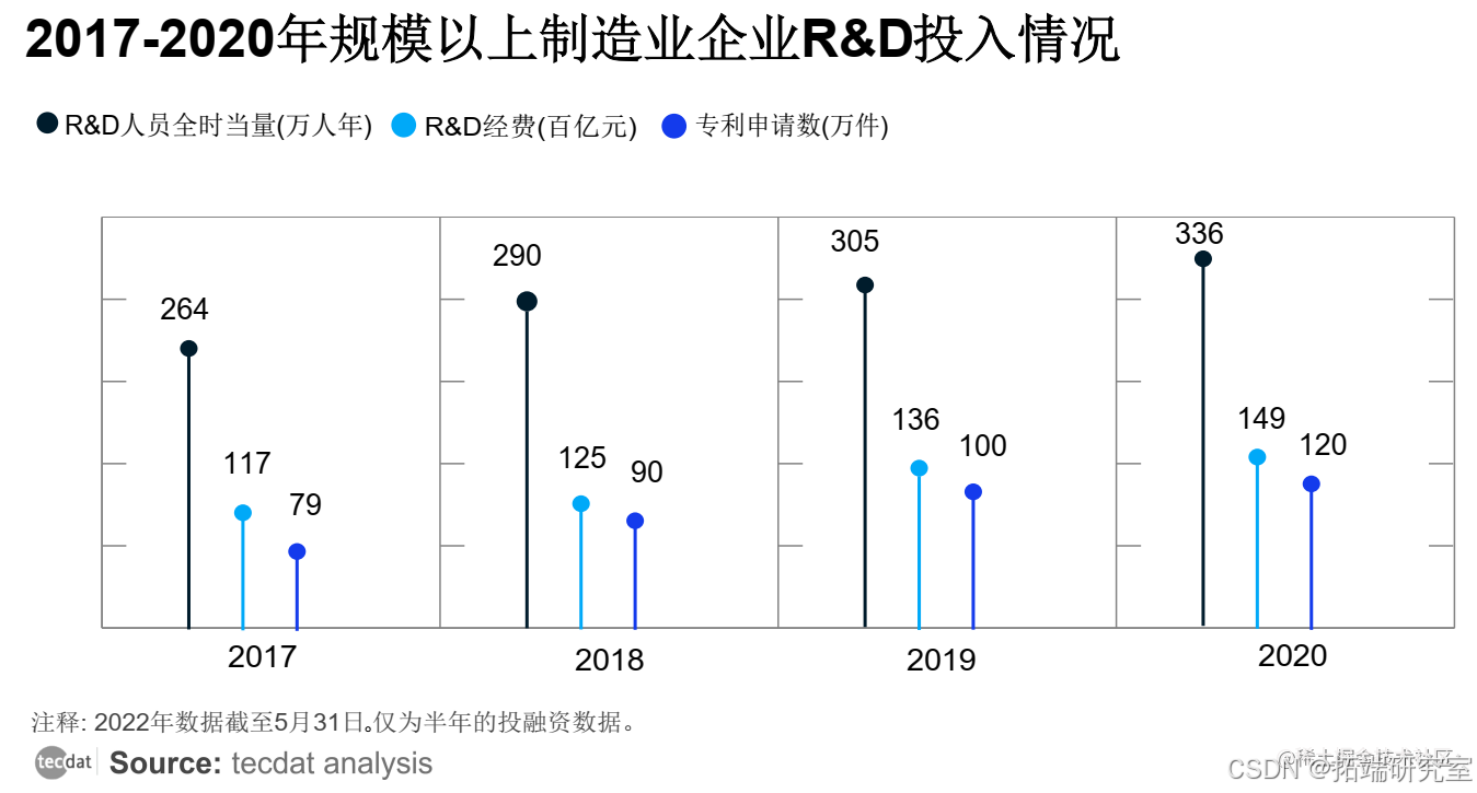 近年来,全国规模以上制造业企业在R & D经费支出与人员投入上逐年增长,这表明企业对研发投入的重视度不断提高,也促使制造业专利申请数持续增加。