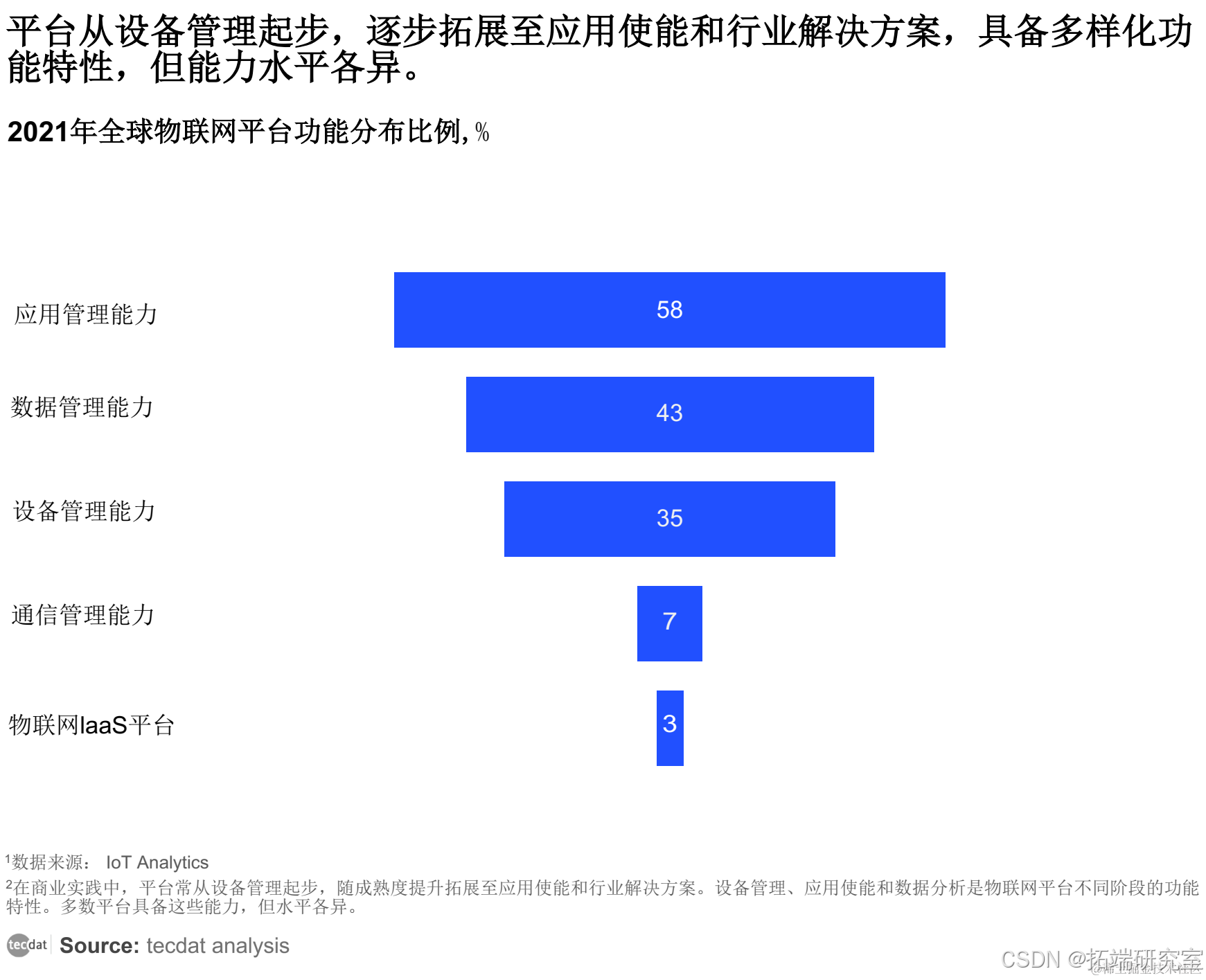 在物联网领域,平台的功能特性和发展阶段是多元化的。从实际应用来看,纯粹的“设备管理”平台并不多见。大多数平台在初期阶段会专注于设备管理功能,随着技术的成熟和市场的扩展,它们会逐步增加应用使能和数据分析等高级功能。这种逐步演进的策略使平台能够满足不断变化的市场需求,同时也反映了物联网技术的持续进步。