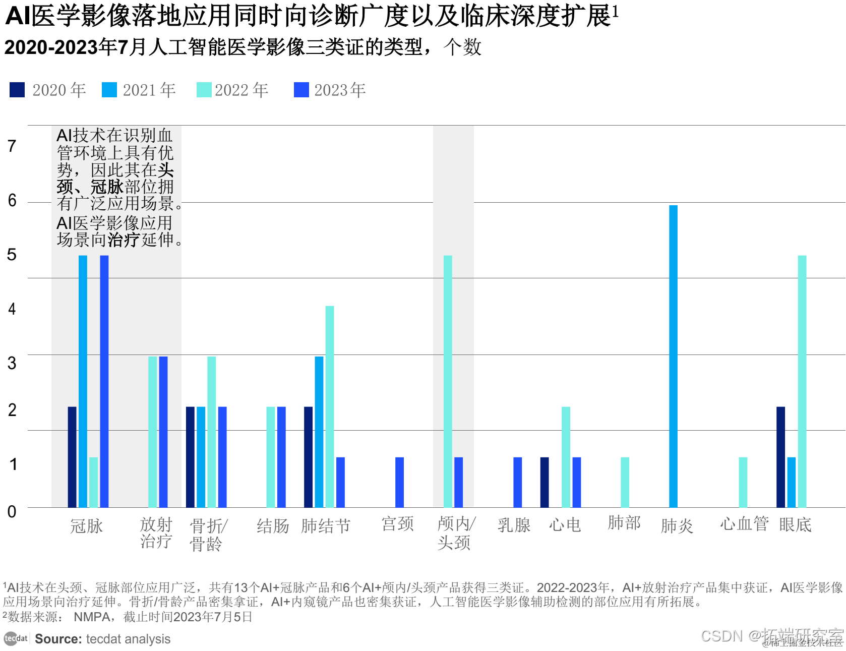 生成式AI推动医学影像企业指数级增长,综合性模型与医学影像结合释放潜力。2022-2023年AI+放射治疗产品集中认证,骨折/骨龄产品在基层医疗辅助价值凸显,AI+内窥镜产品拓展应用场景。