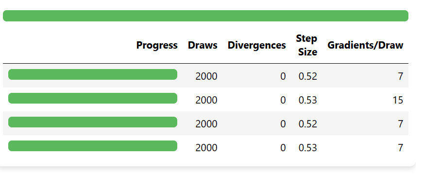 通过模型拟合,我们可以得到模型参数的后验分布,并对模型的收敛性进行检查。