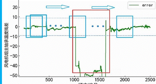通过对比正常温度与预测温度的残差对风机大部件的运行状态进行实时监测,从而实现对风机关键部件的提前预警。