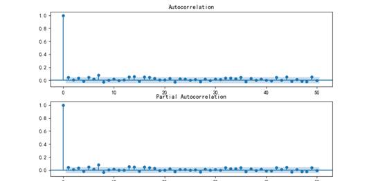 绘制该汇率的日变动百分比序列的ACF图以及PACF图