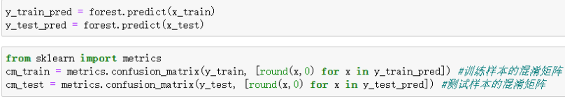 通过混淆矩阵可计算模型在训练样本和测试样本上的预测准确率: