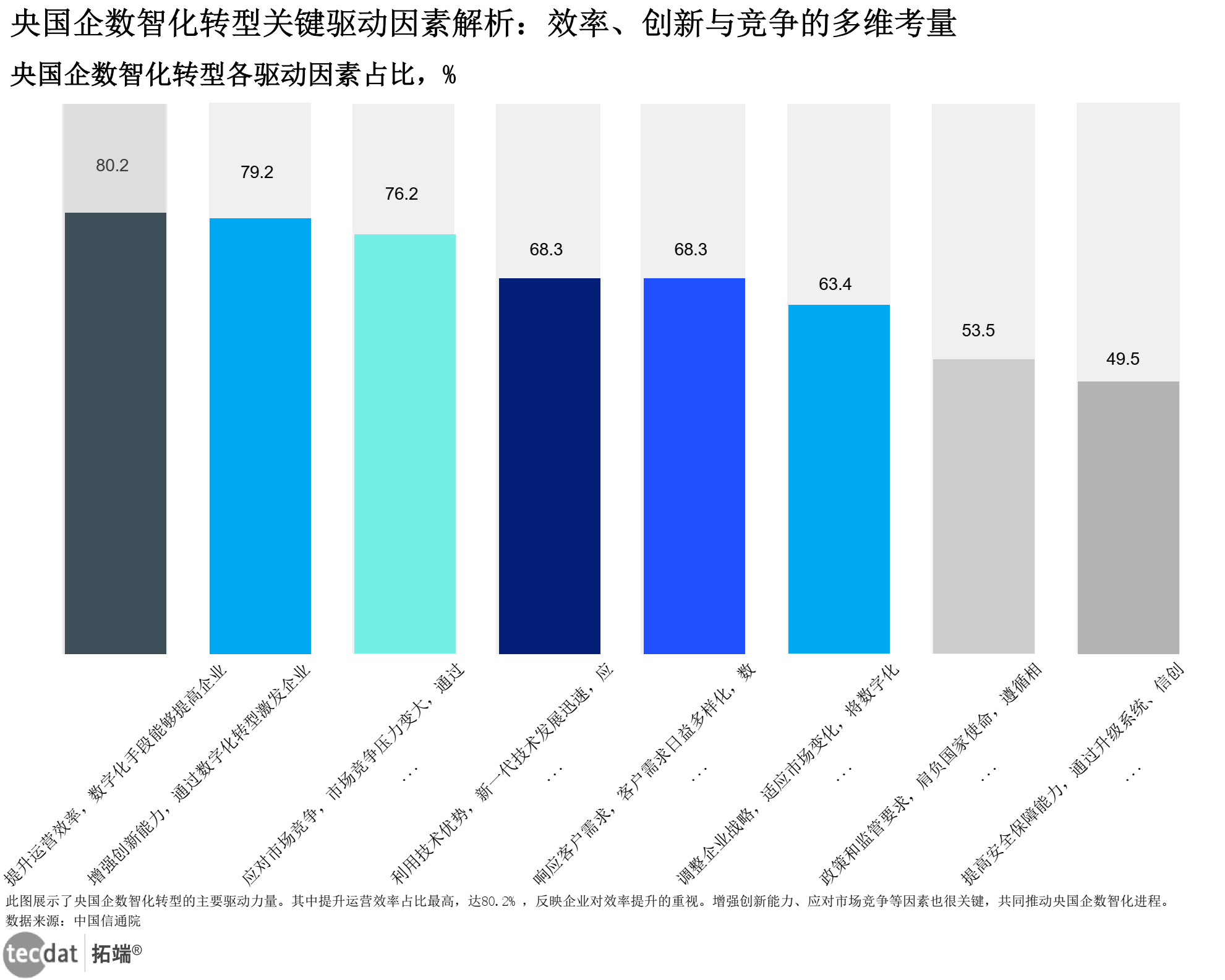 企业在数字化转型过程中,面临着诸多挑战,提升运营效率、增强创新能力、应对市场竞争和响应客户需求成为驱动企业数智化转型的主要力量。据中国信通院《央国企数智化转型发展报告(2024)》显示,提升运营效率的需求占比达80.2%,增强创新能力占比79.2% 。这些数据充分表明,政企行业急需智能化技术的赋能,以实现高质量发展。