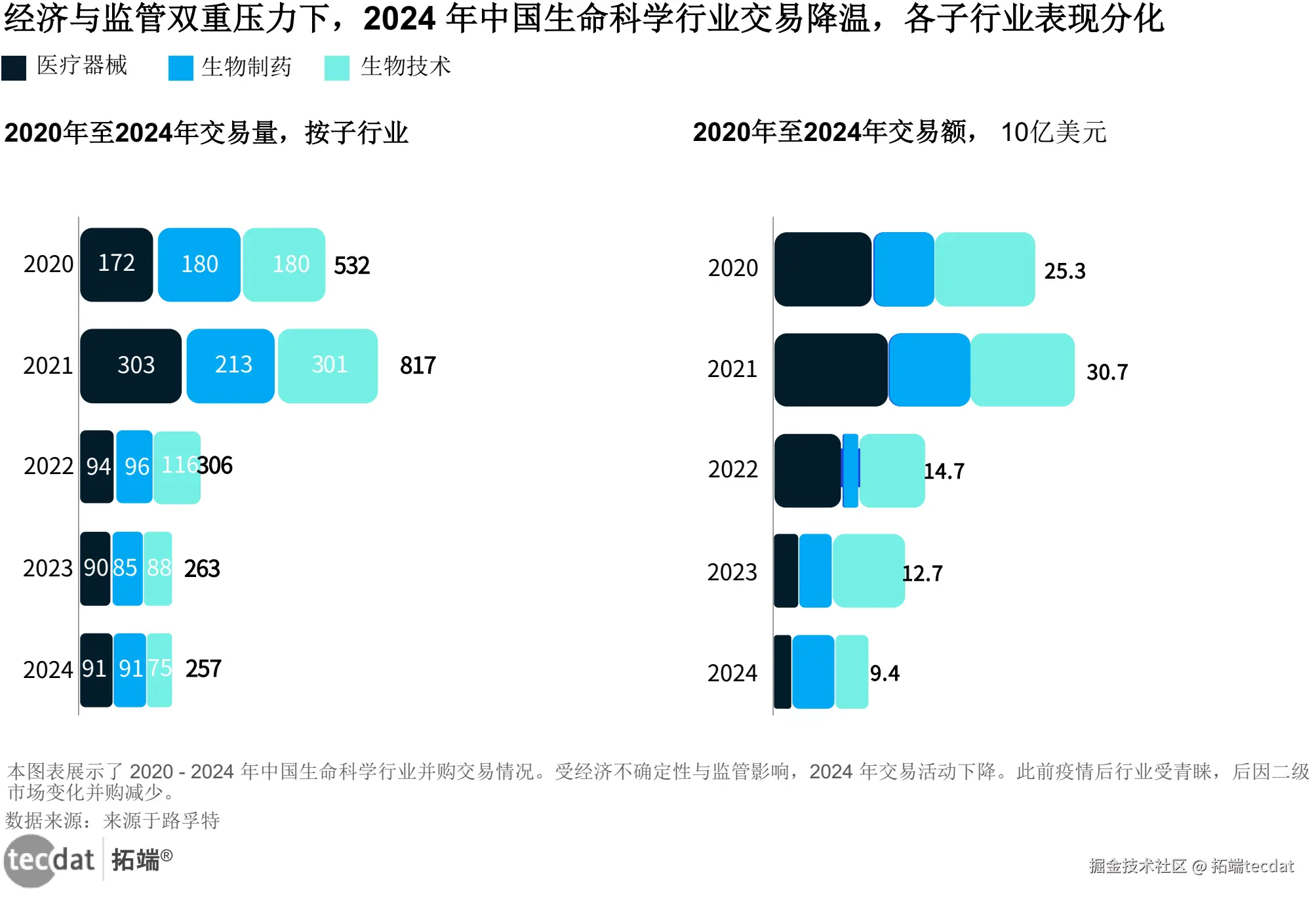 图表3:2020–2024年中国生命科学行业并购交易量及交易额(按子行业)图表PDF模板已分享到会员群