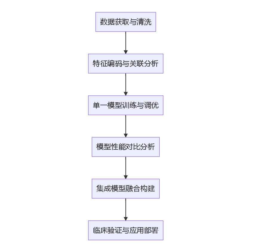 - 集成学习的显著优势:随机森林与模型融合技术在噪声数据中表现出强鲁棒性,适用于医疗预测的复杂性场景;