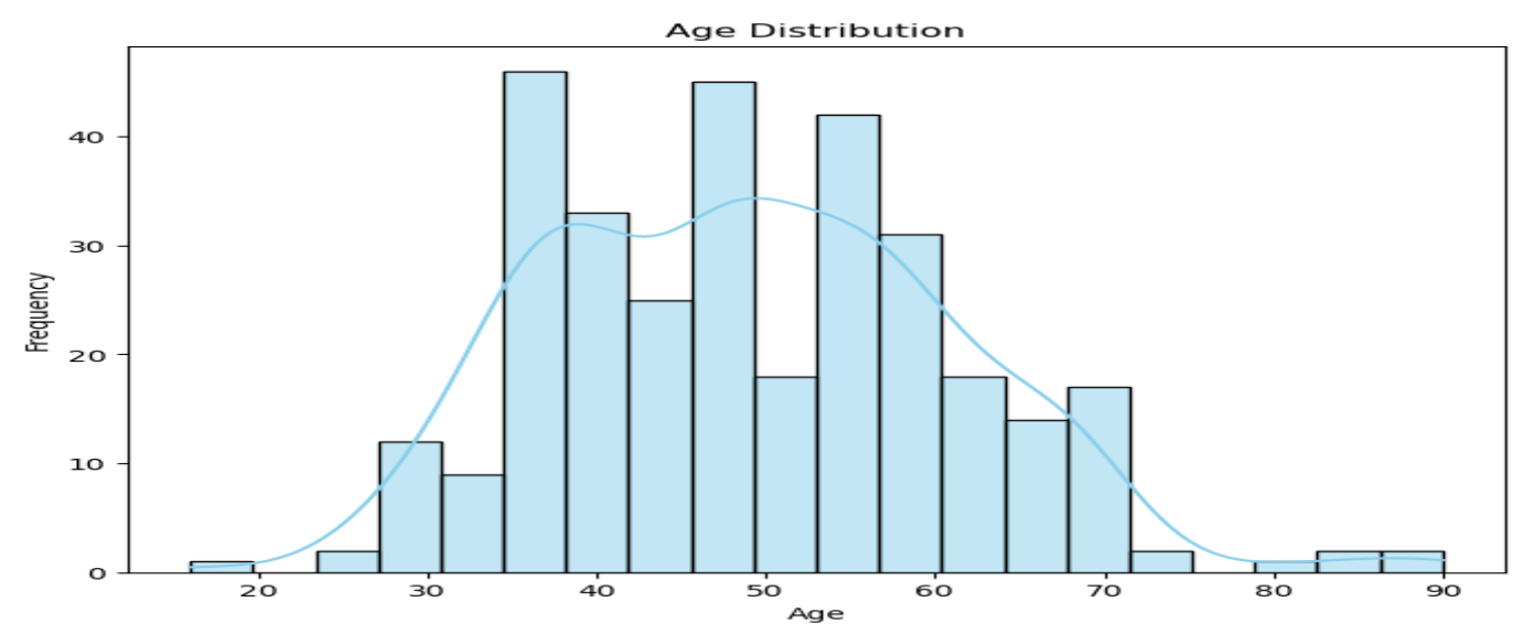 进一步聚焦阳性患者群体,年龄分布呈现明显规律性:35-60岁为高发年龄段,且每10年出现患病高峰(图3);性别分布上女性患者占比54%,但男性患者平均年龄更高,暗示女性患病年龄可能更早(图4、图5)。