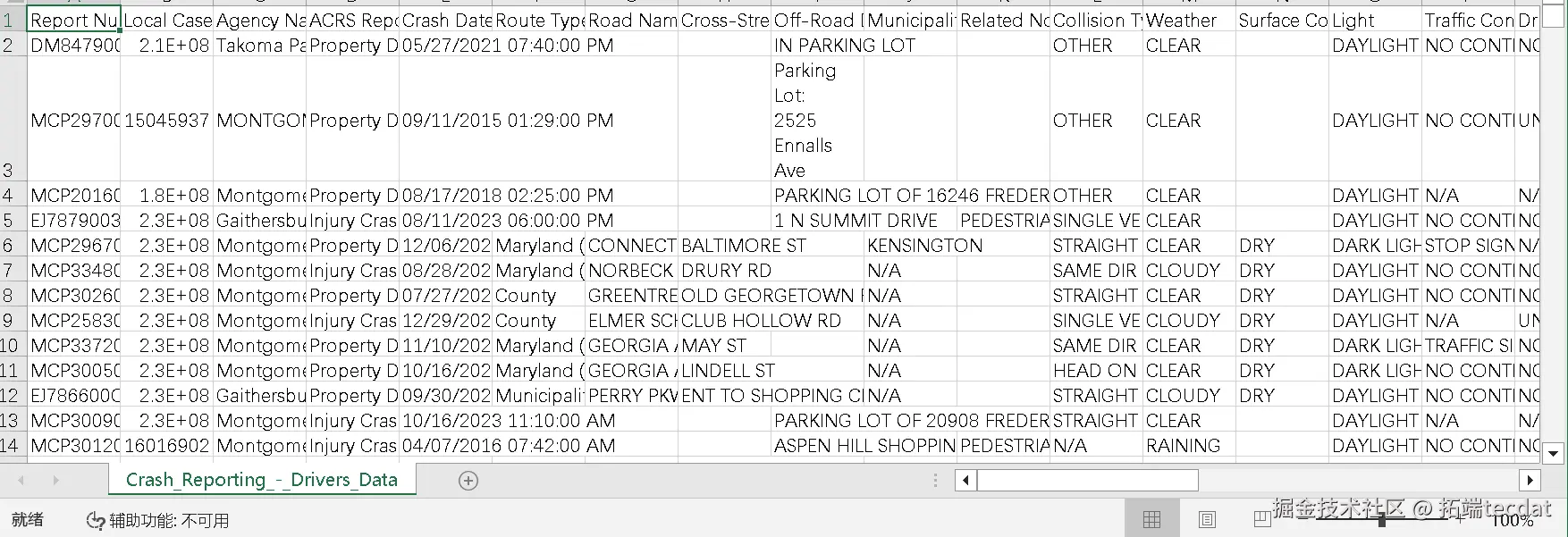 - 交通事故数据(Crash Reporting):某郡月度交通事故驾驶员信息,60条记录,用于分析道路安全趋势。