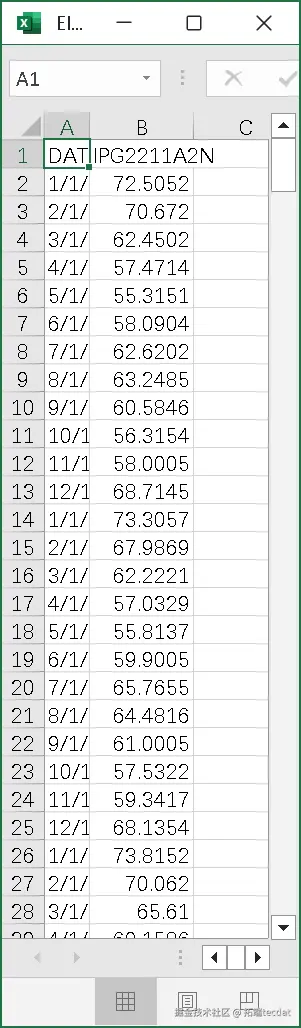 - 能源消耗数据(Electric Production):某地区月度工业用电量,含397条记录,存在显著季节性。