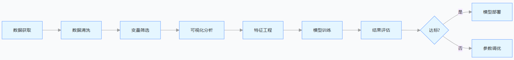首先导入关键工具库,构建包含数据划分、特征编码、模型评估的基础流程。