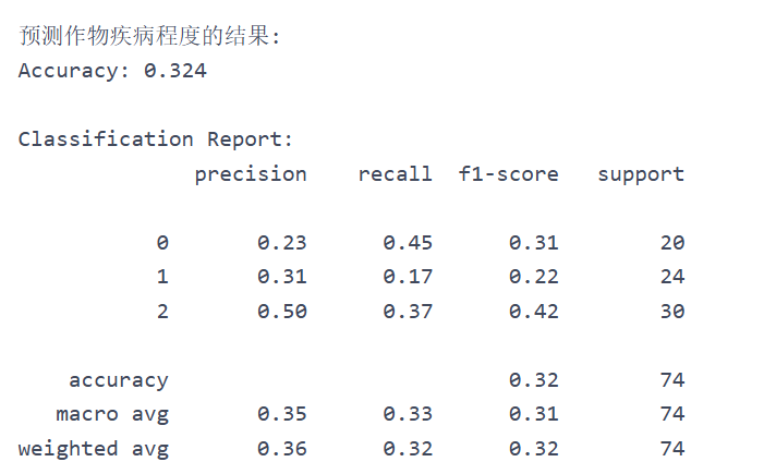 考虑到农业数据可能存在的非线性关系,首先尝试神经网络模型。对"作物病害状态"(crop_disease_status)字段进行缺失值处理与序数编码,将病害程度转化为数值型变量(无病害=0,轻度=1,中度=2,重度=3)。