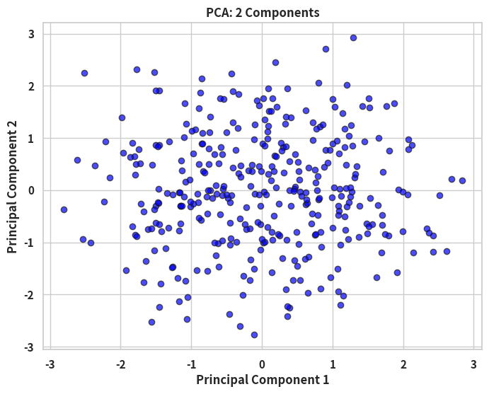 为验证特征冗余假设,采用PCA对预处理后的特征矩阵进行降维。将10维特征降至2维后,前两主成分累计方差贡献率为58%,散点图显示不同作物类型在主成分空间中呈现弱聚类趋势,但信息损失较显著,单独使用PCA降维效果有限。