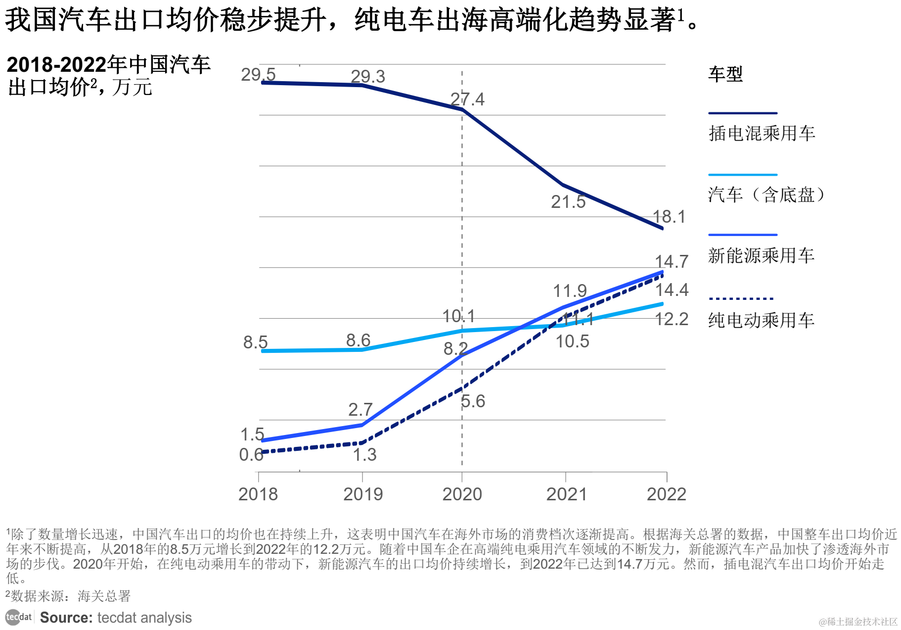 (三)中国汽车出口均价稳步抬升,纯电车高端化趋势明显