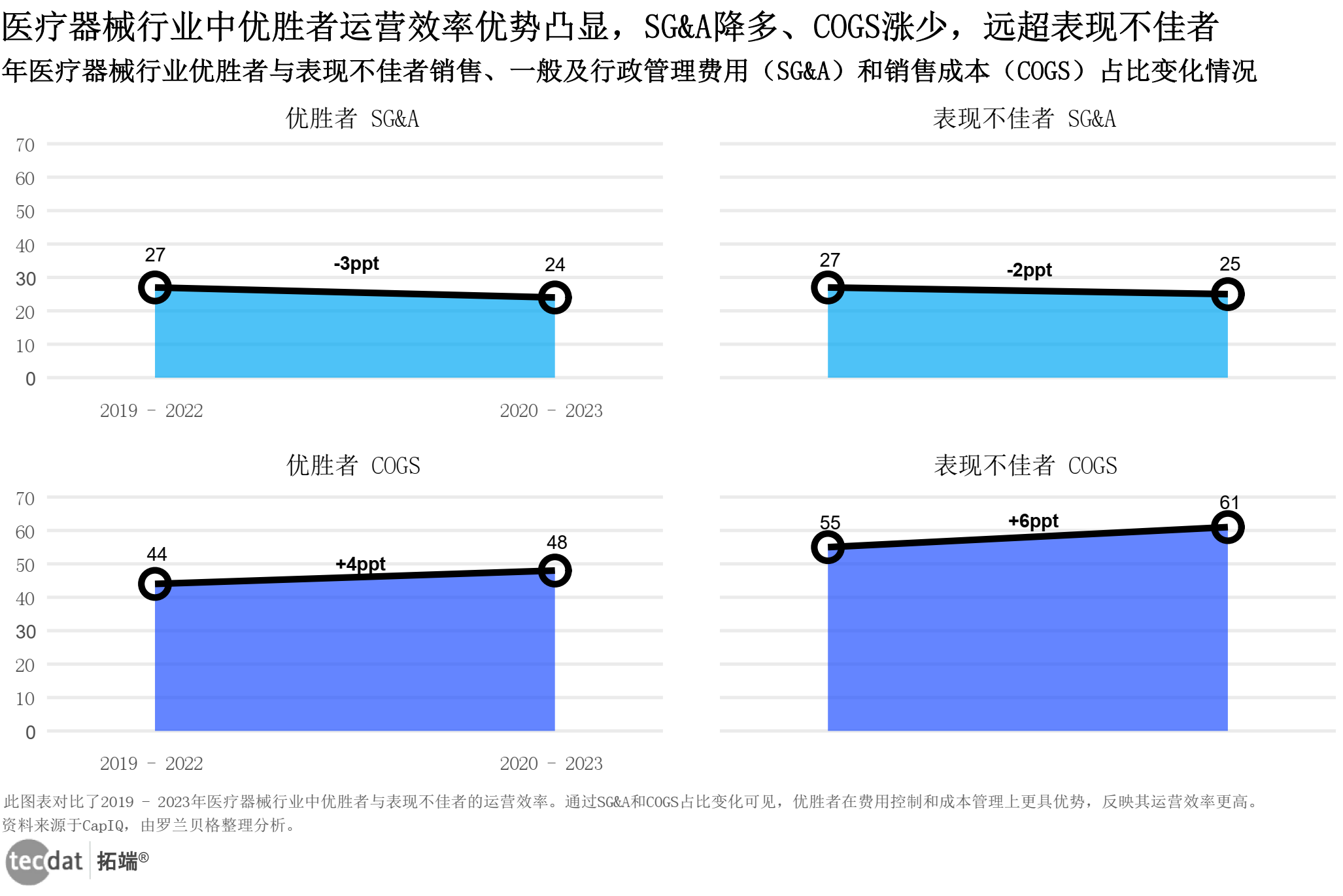 医疗器械行业优胜者与表现不佳者运营效率对比图表PDF模板已分享到会员群