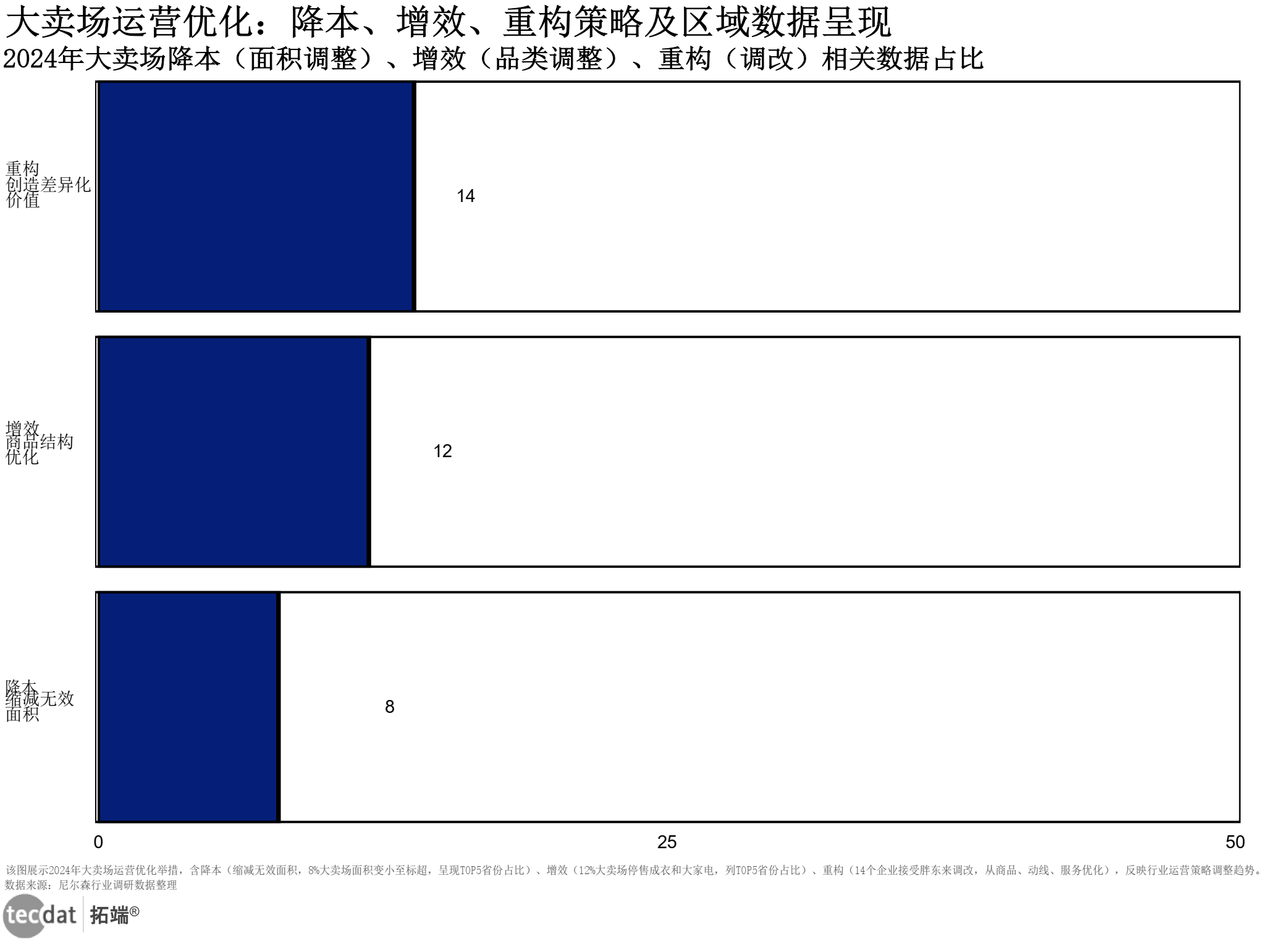 战略收缩:8%的大卖场面积缩小转型为标超,山西、天津等省份调整比例超30%;55%的贵州门店停售成衣家电,聚焦生鲜食品品类。
